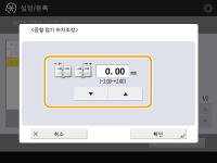옵션 소책자 피니셔를 사용하고 있을 때 용지 접지가 소책자의 정중앙에 오지 않는 경우 이 설정을 이용해 중철 접지 위치를 조정합니다.