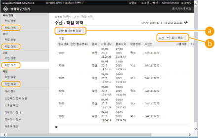 복사, 인쇄, 전송, 수신 또는 저장된 문서의 로그를 표시할 수 있습니다.
