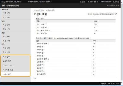 이미 처리된 문서의 로그 뿐만 아니라 대기중인 문서의 상태를 리모트 UI를 통해 확인할 수 있습니다. 또한, 에러 정보 및 소모품 잔량과 같은 기기의 상태도 확인할 수도 있습니다.