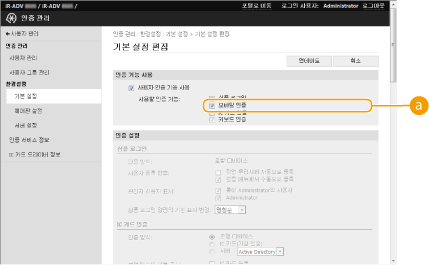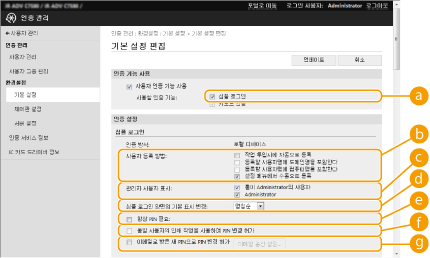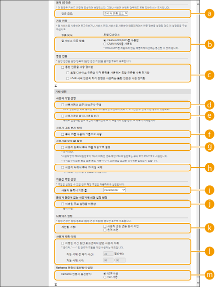 [사용자 인증 기능 사용]의 확인란을 선택하고 필요한 설정을 지정합니다.