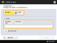 스캔 기본 기능 화면에서 수신인을 지정하십시오.