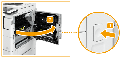 ![]() | 용지 카세트의 상단 우측 커버를 여십시오. |