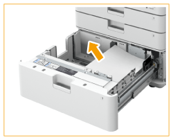 | 용지 카세트를 딸깍 소리가 날 때까지 미십시오. 용지 카세트를 닫을 때 손가락이 걸리지 않도록 주의하십시오. 부상을 입을 수 있습니다. |