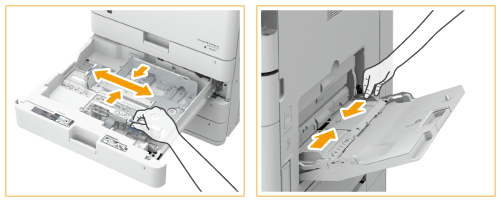 용지는 실제로 확인하는 위치에 걸려 있지 않을 수 있습니다. 이 경우에도 화면의 안내에 따라 모든 위치를 확인하십시오. 용지 걸림을 제거할 때까지 용지 걸림이 있음을 표시하는 화면이 표시됩니다. 용지 걸림이 있음을 표시하는 화면에서 <닫기>를 누르면 용지 걸림을 즉시 제거하지 않고 계속 작업을 수행하고 설정을 지정할 수 있습니다. 화면에 용지 걸림으로 표시된 위치 이외의 위치에서 용지를 제거하지 마십시오. 그렇게 하면 다른 위치에 용지가 걸리거나 출력 문서에 페이지가 누락될 수 있습니다. |