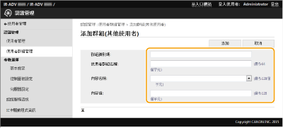 按一下 [使用者管理] [認證管理]  [使用者群組管理]。