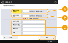 <系統管理員PIN>輸入 7 位數或更少位數的數字,作為新的系統管理員 PIN,然後按 <確認>。為了確認,請再次輸入 PIN 然後按 <確定>。