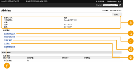 若是您使用系統管理員權限登入,您也可以從 AirPrint 頁面變更 AirPrint 設定。