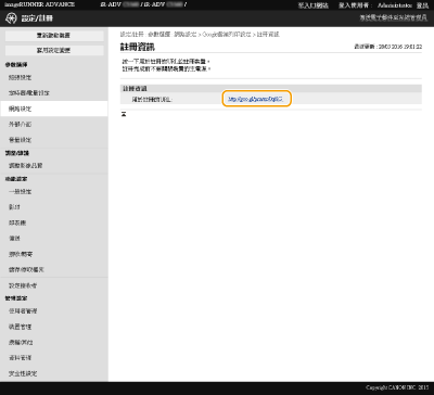 按一下 [用於註冊的URL] 顯示的 URL 連結。