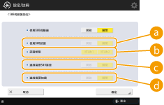 當 <連線需要加密> 設為 <開啟> 時,本機只能連接至支援 SMB v3.0 加密通訊的 SMB 伺服器。當 <指定SMB用戶端版本> 的 <1.0> 和 <2.0> 設為 <開啟>,但 <3.0> 未設為 <開啟> 時,本機無法連接至不支援 SMB v3.0 加密通訊的 SMB 伺服器。