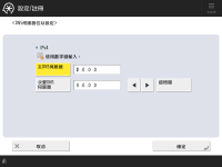 按 <參數選擇>  <網路>  <子線路設定>  <系統資料通訊的設定>  <DNS伺服器位址設定>。
