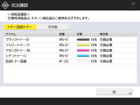 (状況確認)を押して表示される状況確認画面で、トナーの残量などを調べることができます。