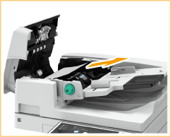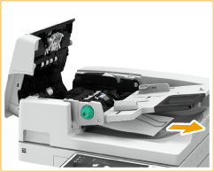 ![]() | If an original is jammed, gently pull it out in the direction of the arrow. ![]() If you cannot remove the jammed original, proceed to the next step without forcibly removing it. |
