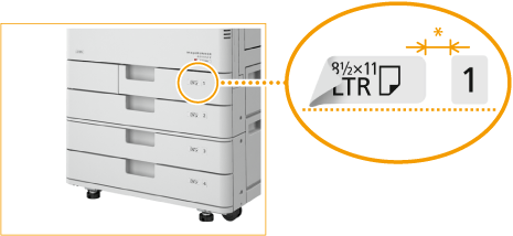 Attach the paper size label at the same height as the cassette number indicator, and approximately 1/4" (5 mm) to the left.