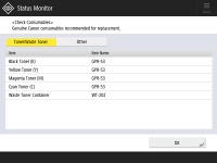 (Status Monitor), the Status Monitor screen is displayed, allowing you to check the toner level or other status indications.