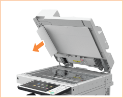 ![]() | If an original is jammed, gently pull it out in the direction of the arrow. ![]() If you cannot remove the jammed original, proceed to the next step without forcibly removing it. |
