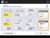 Premere <Cambia> in <Formato originale> e selezionare il formato dell'originale. Se si seleziona <Autom.>, il formato dell'opuscolo viene selezionato automaticamente a seconda del formato dell'originale.