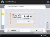 Drücken Sie  (Einstellungen/Speicherung)  <Justage/Wartung> <Funktion justieren> <Falzposition für Sattelheftung justieren>.