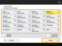 <Aceptar>. Registrar el tamaño y el tipo de papel de uso frecuente para la bandeja multiuso