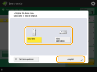 ![]() | Si escanea originales de tamaño libre o con mucha transparencia, o si desaparece el borde de la imagen al escanear, tiene que especificar manualmente el tamaño de lectura. |