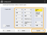 2 | Seleccione el tamaño de papel. ![]() ![]() Para obtener información sobre los tamaños de papel mostrados cuando se pulsa <Otro tamaño>, consulte Papel disponible. |
