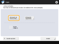 Para habilitar el Bloqueo de lectura de documentos mediante el Código TL, consulte Usar el código TL para restringir la copia. |
