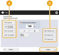 ![]() | Puede ampliar o reducir especificando el porcentaje de aumento (%). Ampliar o reducir especificando el aumento |