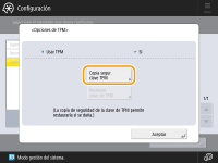 Pulse <Opciones de gestión>  <Gestión de datos>  <Opciones de TPM>.