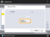 La seguridad proporcionada por TPM no garantiza la protección completa de los datos y el hardware. Tenga en cuenta que Canon no será responsable ante ningún fallo o daño derivado del uso de este modo.
