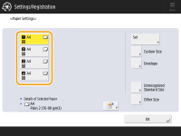 Se o tipo de papel do papel que você carregou não estiver listado na tela de configurações detalhadas, você poderá registrá-lo na lista de tipos de papel. Configurações de gerenciamento do tipo de papel