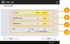 <使用SMB认证>通过使用高级存储箱中的用户信息进行用户认证。要进行用户认证,请按<打开>。