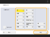 2 | 용지 크기를 선택하고 <확인>를 누릅니다. |
