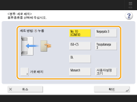 <확인>을 누릅니다. 수동 급지대에서 자주 사용하는 용지 크기 및 종류 등록