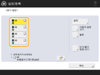 용지가 적재된 용지 공급원을 선택하고 <설정>을 누릅니다.