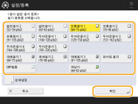 용지 종류를 선택하고 <확인>를 누릅니다.