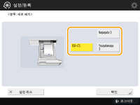 용지가 제대로 적재된 경우에도 일부 작은 표준 크기가 제대로 감지되지 않을 수 있습니다. 이러한 경우 <인식 불가 정형 크기>를 누르고 용지 크기를 선택하십시오.