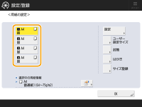 自動検知可能な用紙サイズ定形サイズの用紙をセットしたにもかかわらず<ユーザー設定>と表示された場合は、<ユーザー設定サイズ>