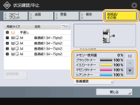 (状況確認)を押して表示される状況確認画面で、トナーの残量などを調べることができます。