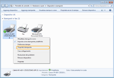 Fare clic con il pulsante destro del mouse sull'icona della macchina, quindi fare clic su [Proprietà stampante] (o [Proprietà]).