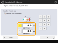 Specificare la lunghezza del lato <X> e del lato <Y>. Premere <X> o <Y> per inserire la lunghezza di ciascun lato usando i tasti numerici.
