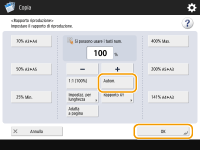 ![]() | È possibile ingrandire o ridurre per adeguare automaticamente il formato carta selezionato. Ingrandimento o riduzione delle copie in base al formato carta |