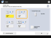 È possibile utilizzare solo carta A4 per <Libro 2 lati>.Quando si utilizza <Libro 2 lati>, posizionare gli originali sul vetro di lettura. |