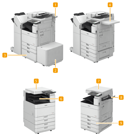 Pour en savoir plus sur les options compatibles avec cet appareil, contactez votre distributeur Canon agréé. Il est possible que certains réglages ne soient pas affichés avec certaines configurations des équipements en option installés sur l'appareil. |