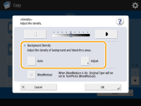 ![]() | Você pode ajustar a densidade do plano de fundo. Isso possibilita fazer cópias mais claras de originais como jornais ou originais com planos de fundo colorido. Ajustando a densidade do plano de fundo das cópias |