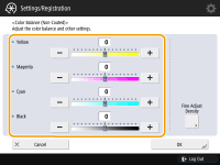 Selecione a cor a ser ajustada e ajuste a densidade.