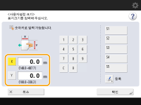 <X> 또는 <Y>를 눌러서 숫자 키를 사용하여 양쪽의 길이를 입력합니다. ![]() 자주 사용하는 용지 크기를 <S1>부터 <S5>까지 버튼에 등록하면 버튼만 눌러서 불러낼 수 있습니다. 프리 사이즈 용지 등록(사용자 정의 크기 용지) | |