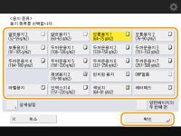 2 | 용지 크기를 선택하고 <확인>를 누릅니다. |