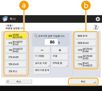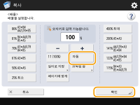 에서 복사 비율을 선택한 다음 <확인>를 누르십시오.
