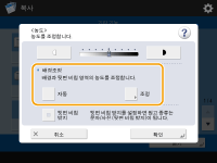 ![]() | 규격 외 원고 또는 투명도가 높은 원고를 복사하고자 하는 경우, 또는 수동 급지대에 설정된 용지로 복사하고자 하는 경우 용지를 수동으로 선택해야 합니다. |