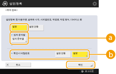 2 | <설정>을 선택하고 필요한 설정을 구성한 후, <확인>를 누릅니다. ![]() <임의 문자열>부서 ID/사용자 이름, 날짜/시간, 장치 이름과 같은 정보 삽입 외에도, 사용자 정의 텍스트를 추가할 수 있습니다. <확인시 비밀번호>정보 분석 도구를 이용해 추적 정보를 분석할 때 비밀번호를 입력하도록 하려면 <설정>을 누르고 비밀번호를 지정하십시오. 이 정보의 출고 시 기본 설정은 "7654321"입니다. 비밀번호를 변경하는 것이 좋습니다. |