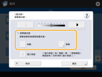 顯示選擇原稿尺寸的畫面時如果 <選擇紙張> 設定為 <自動>,可能會出現選擇原稿尺寸的畫面。出現的原因是放置的原稿為高透明度、原稿底色極暗,或是原稿尺寸很小,以致於無法確認原稿尺寸並自動選擇紙張。請選擇原稿尺寸,或是與原稿相近的尺寸。 如果某個紙張來源的 <紙匣自動選擇開啟/關閉> 設為 <關閉>,則在 <選擇紙張> 設為 <自動> 時不能用該紙張來源中添加的紙張進行影印。<紙匣自動選擇開啟/關閉> 此外,根據紙張類型,即使某個紙張來源的 <紙匣自動選擇開啟/關閉> 設為 <開啟>,也可能無法執行自動紙張選擇。若要使用無法執行自動紙張選擇的紙匣中添加的紙張,請手動指定紙匣。 |